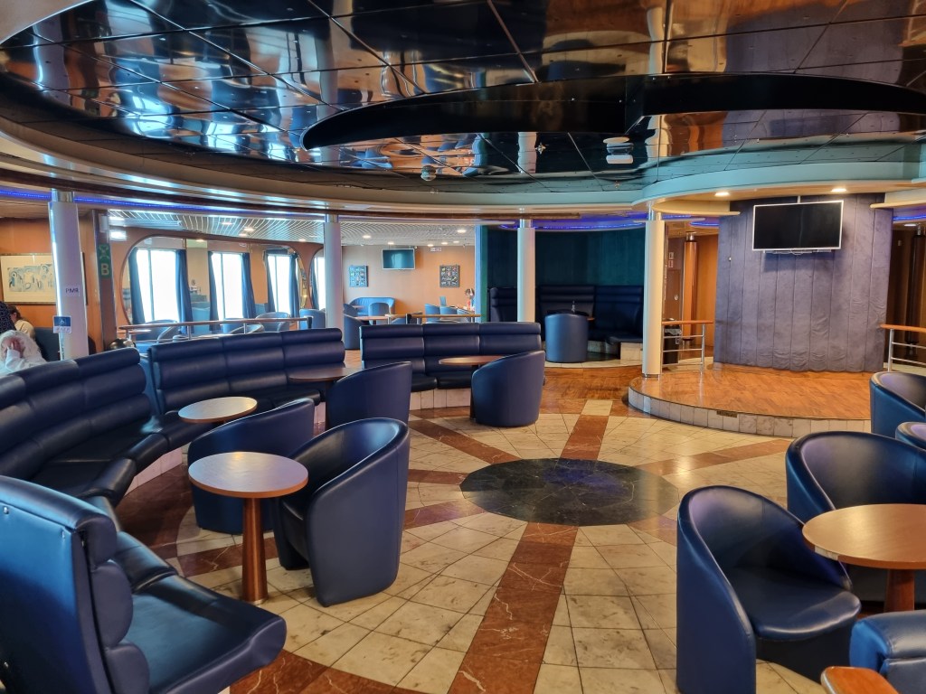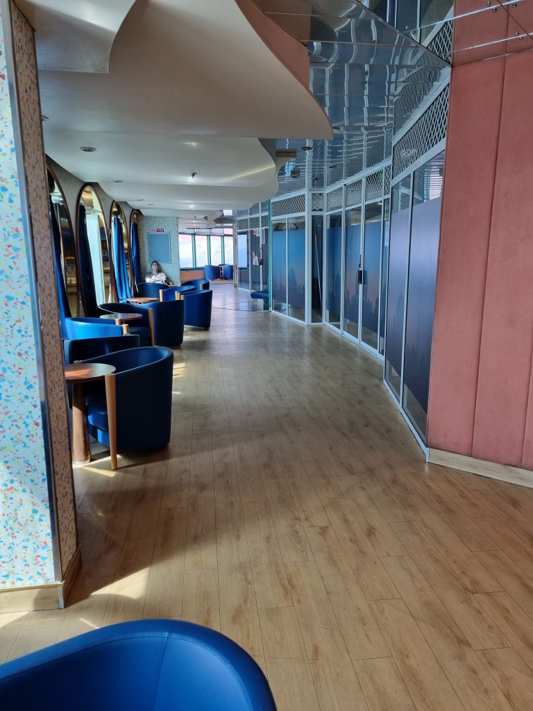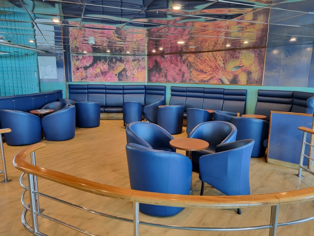 Butiksutrymmena och platsen där det på andra rutter serverats ala carte var igenbommade. I övrigt var alla utrymmen tillgängliga att slå sig ner i.