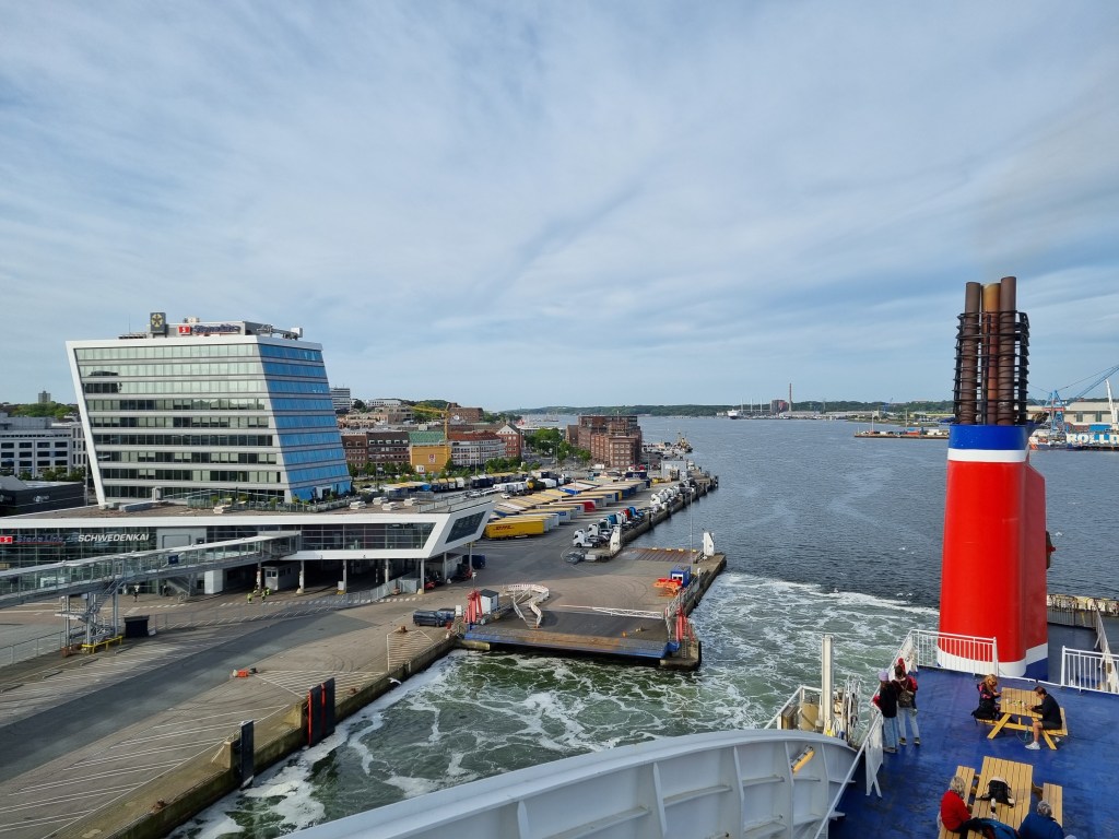 Känt blickfång om man besökt Kiel med färja. Strax innan avgång öppnas bildäck upp en stund på nytt så att man kan ställa ner saker man handlat. Det kan ha varit en och annan som passat på, eftersom det mesta i butiksväg iland höll stängt denna annandag pingst, precis som dagen innan. Hittade en kiosk på järnvägsstationen med svenska priser (minst) men det fick duga för att få lite tyskt. På båten köpte jag Whiskey i present. Det finns mer ombord än Famous Grouse och det andra mainstream.