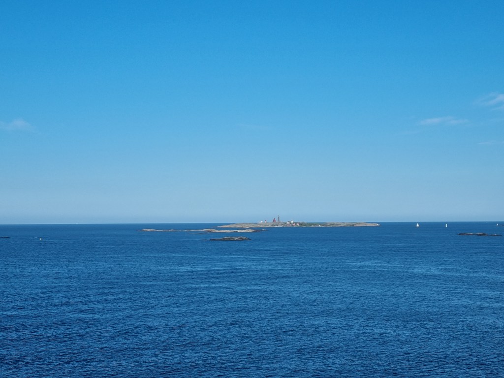 Vädret var utmärkt och sikten god. Vi såg land praktiskt taget hela tiden. Det som saknades var utemöbler att sitta på. Annars ett bra och väl tilltaget utedäck.