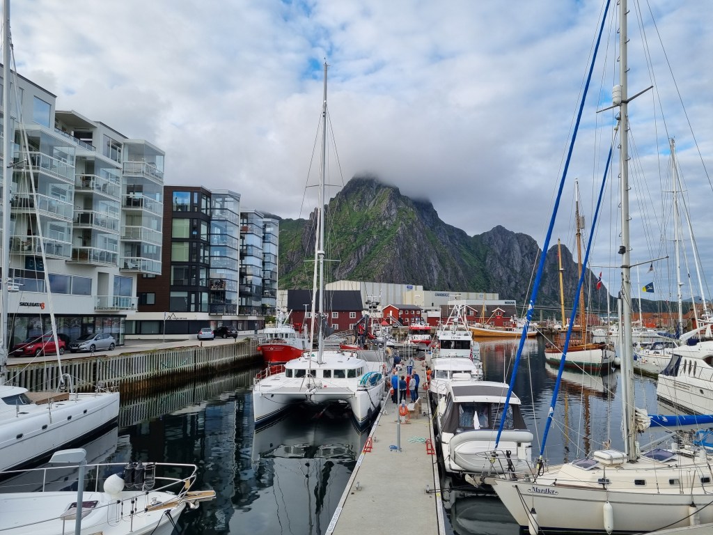 Ett av de längre uppehållen gjordes i Svolvaer. Långt nog för middag iland och en promenad runt i byn.