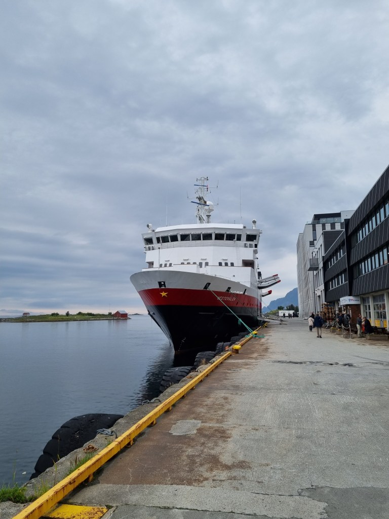 Stokmarknes där det finns ett Hurtigrut-museum med ett helt fartyg inbyggt. Här fick jag bråttom tillbaka till fartyget efter en övermodigt lång men självvald promenad.