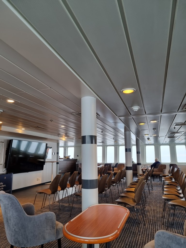 Samlingslokalen i aktern. Skönt ställe att slappa på. Här lyssnade jag på värdens presentation av fartyget. Han gick igenom några av ombyggnaderna som gjorts, bland annat bytet av huvudmaskiner.