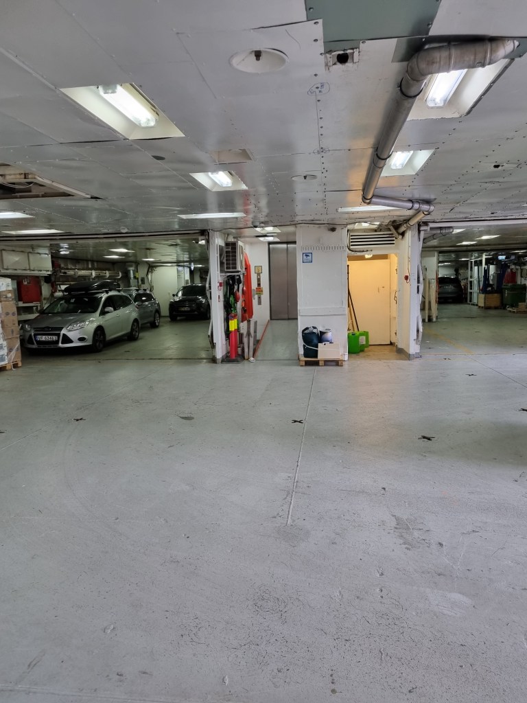 Nere vid vattenlinjen finns bildäcket och provianteringsutrymmen.