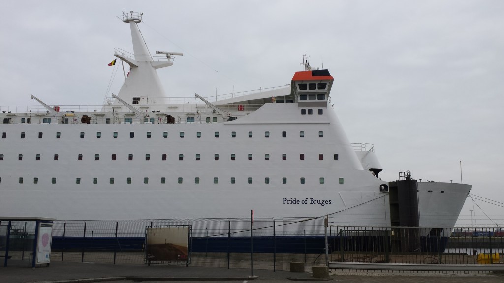 I universitetsstaden Gent hördes det förstås svenska med tanke på Volvos verksamhet i området. Jag fick tips om stan av en man jag mötte på ett tåg mellan Stockholm och Alvesta. Vandrarhemmet som jag bodde på fungerade också som någon slags studentboende, så det var livat på kvällen fast tyst när jag skulle sova. Via Brügge och en lokalbuss mot Zeebrügge som var anpassad till P&O Ferries tider, kom jag fram till havet igen. Mycket stilla men antagligen full fart på sommaren. Hamnen såg ut som jag hade föreställt mig en belgisk industrihamn. Till och med himlen var grå. Det går någon slags anslutningsbuss hela vägen tror jag, men promenaden på 20 minuter var helt ok. Nyrenoverade Pride of Bruges skulle ta mig till Hull i England. Trots renoveringen, kändes det precis som på många färjor, som om tiden stått stilla ombord samtidigt som resten av världen har förändrats. Mycket fräsch hytt, där det till och med luktade nytt om duschutrymmet. Hyttnyckeln var – en nyckel! Den hämtades ut i hallen på respektive våningsplan och lämnades också där vid ankomst. Besättningen kom till stor del från Asien (Filipinerna?). Det var fler i servicepersonalen än vad vi är vana vid i Skandinavien. Riklig buffé till middag och frukost. Det fanns också en ala carte och Starbucks ombord. Ologisk planlösning i salongsutrymmena, så det blev mycket vandrande för att ta sig mellan våningsplanen. Det försiggick underhållning i två av barerna av samma snitt som det brukar vara på färjor. Butiken var ovanligt stor för att vara på väg mot Storbritannien, men så byggdes ju också färjan när Taxfree fanns. Och så blev det igen, men linjen är nedlagd och Pride of Bruges och systerfartyget är sålda. Detta är en kombifärja i dess rätta bemärkelse, som på denna linje friskt blandar minikryssare, transportresenärer och gods. Tidigare gick Pride of Bruges på linjen mellan Rotterdam och Hull innan hon ersattes kort efter millennieskiftet.