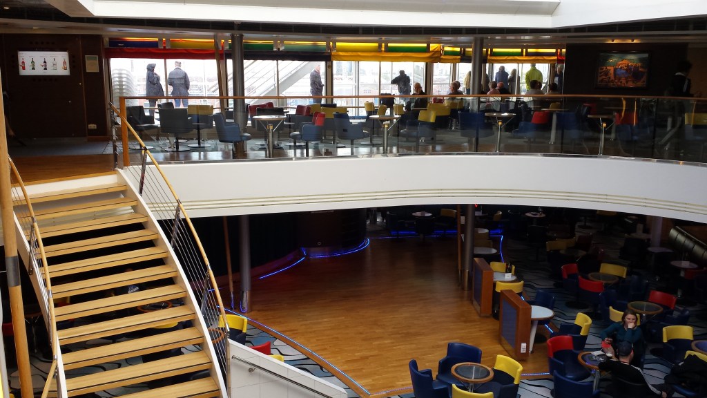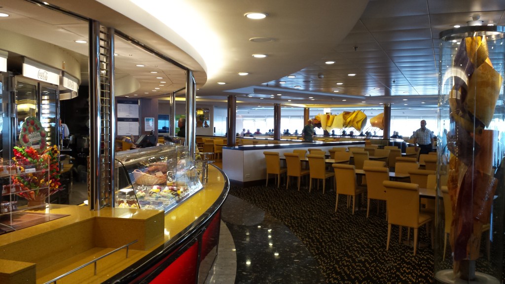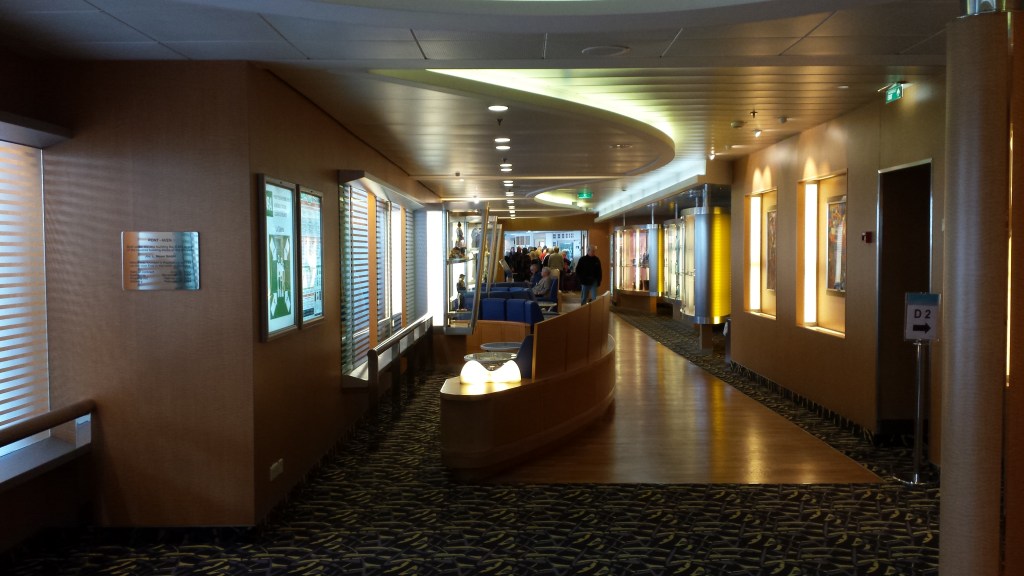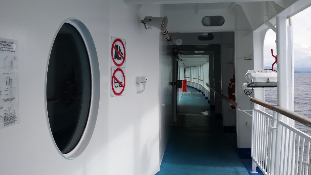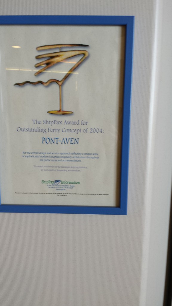 Med ombord fanns ett stort antal pensionärer med stora väskor, förmodligen på väg till sina semesterboenden i Spanien eller Portugal. Organisationen ORCA fanns ombord, som spanade efter valar och delfiner. Färjan och koncepten ombord var närmast att likna med det som finns i internationell trafik från Stockholm och Oslo. Inget renodlat disco, men däremot en förvånansvärt stor butik för att inte vara Tax Free. Färjan i sig är jämförbar med Viking Grace + Glory och Silja Europa. Pont-Aven tar 2400 passagerare, 650 bilar och har 650 hytter. Hon trafikerar Portsmouth, Plymouth, Roscoff, Cork och Santander på en veckoturlista som varierar med säsong. Vintertid trafikerar hon Portsmouth-Saint Malo när Bretagne har vintervila och rutterna till Spanien täcks med enklare E-flexerfärjor.
