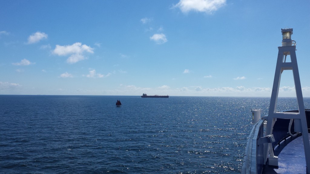 Resorna fortlöpte smidigt på alla sätt. Den enda uppenbara skillnaden ute till havs är att avståndet till Anholt och vindkraftparkerna blivit längre i och med flytten söderut från Varberg till Halmstad. Det var annars ganska fint att spana in mot sandstränderna när Anholt rundades. Linjen går på tvärs mot de stora stråken från Nordsjön mot Bälten och Östersjöhamnarna. Så man kan stöta på ett och annat intressant fartyg på vägen över. Stena Nautica kör upp till två turer per dygn och har en schemalagd seglingstid på fyra timmar och 35 minuter, med undantag av nattseglingen från Danmark som tar omkring 5 timmar.