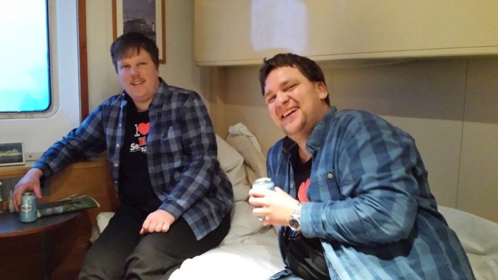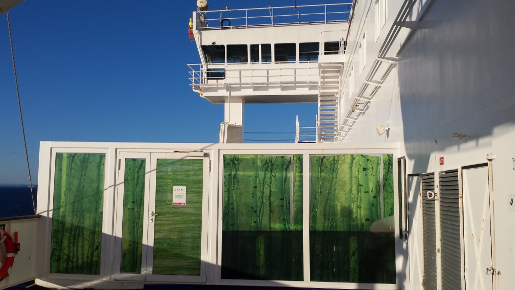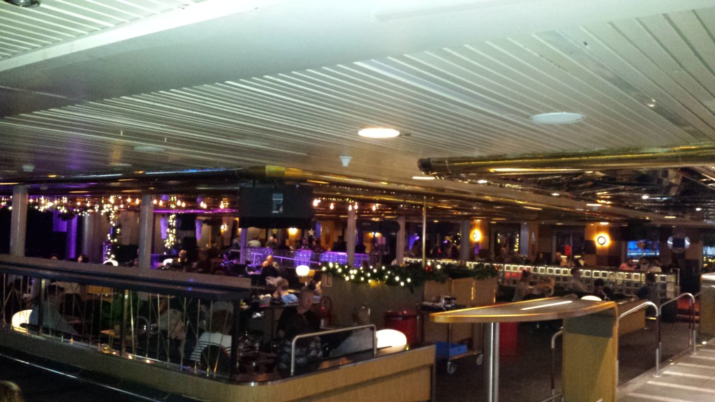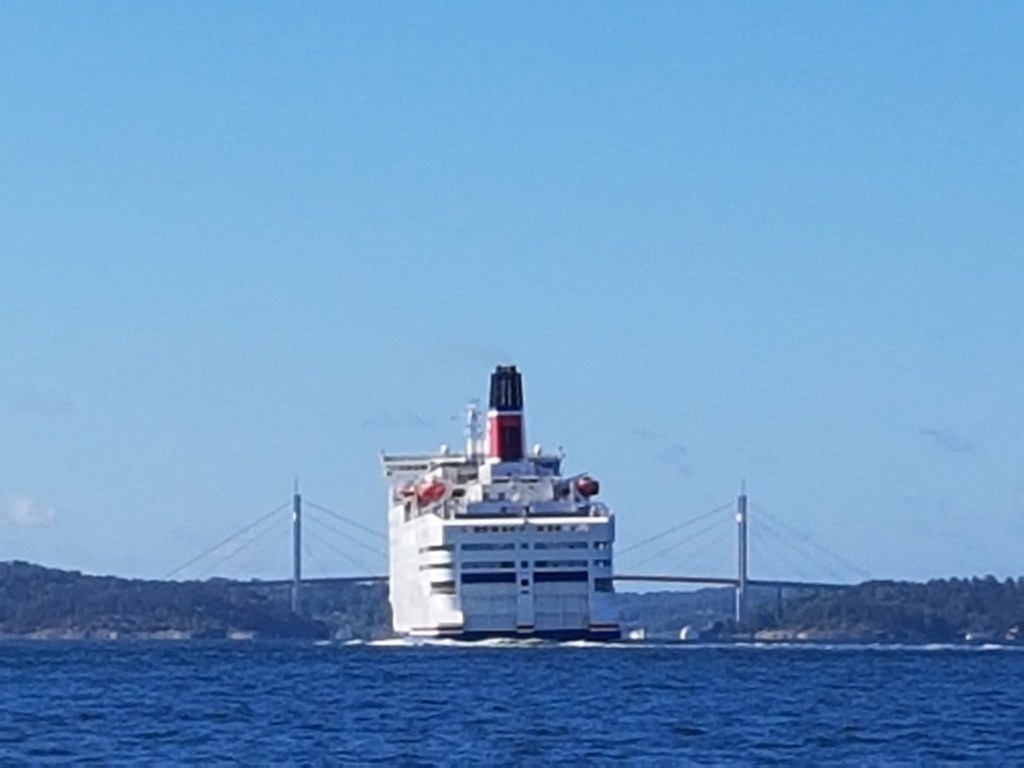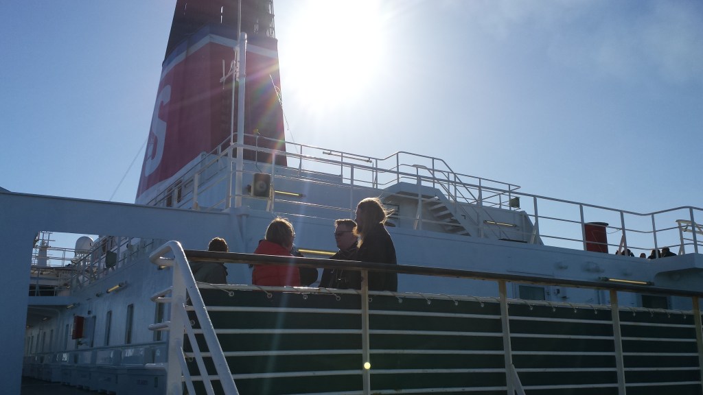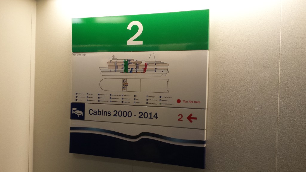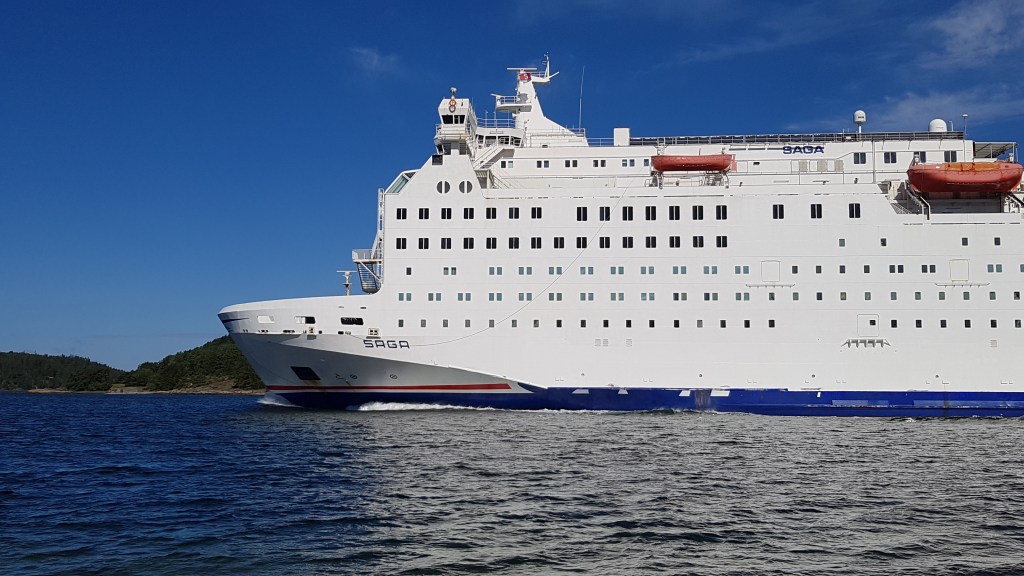 Mitt i natten knackade det upprepat på dörren. I den vanliga världen tyder det på något allvarligt, men Saga är Saga. Jag masar mig upp ur slafen, drar täcket runt mig och öppnar. Där står en kvinna som letar efter sitt sällskap och chansade på min hytt (de fanns i hytten intill visade det sig). Istället för att ursäkta sig och stänga dörren, var hon pratsugen och började fråga om vilka som bodde i min hytt. Det var bara jag själv, och dum som jag var bjöd jag inte in henne. En dörr som står öppen var annars ett tecken (och är väl ofta på färjor), en signal att här kan man joina.