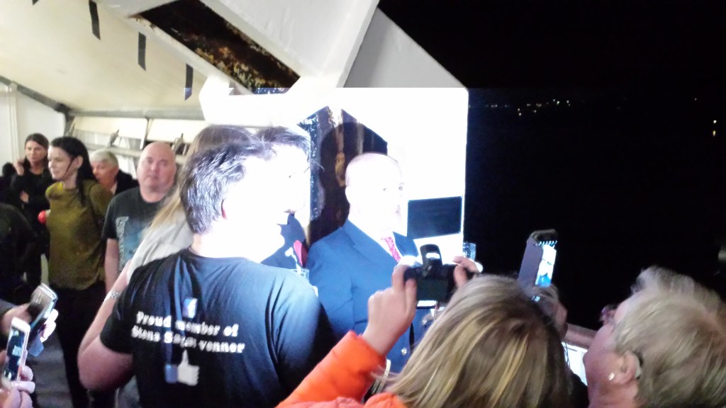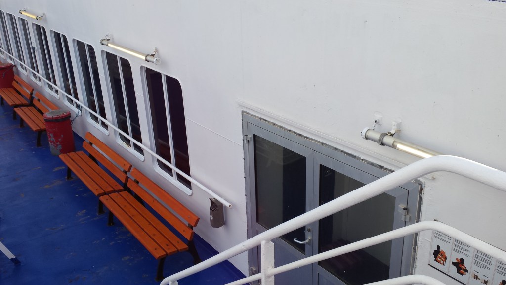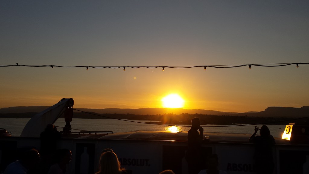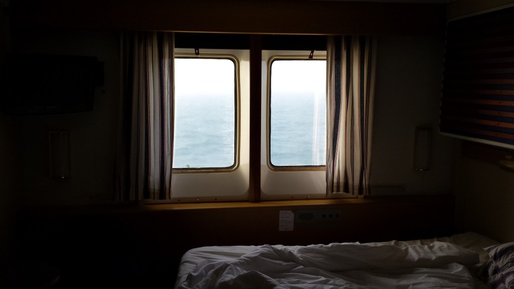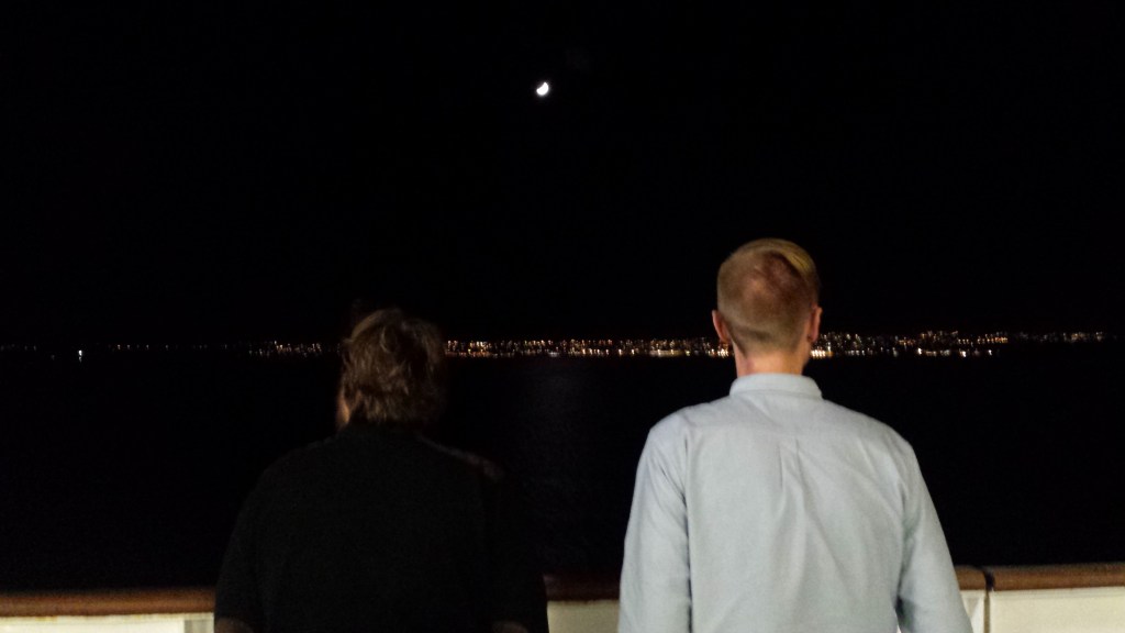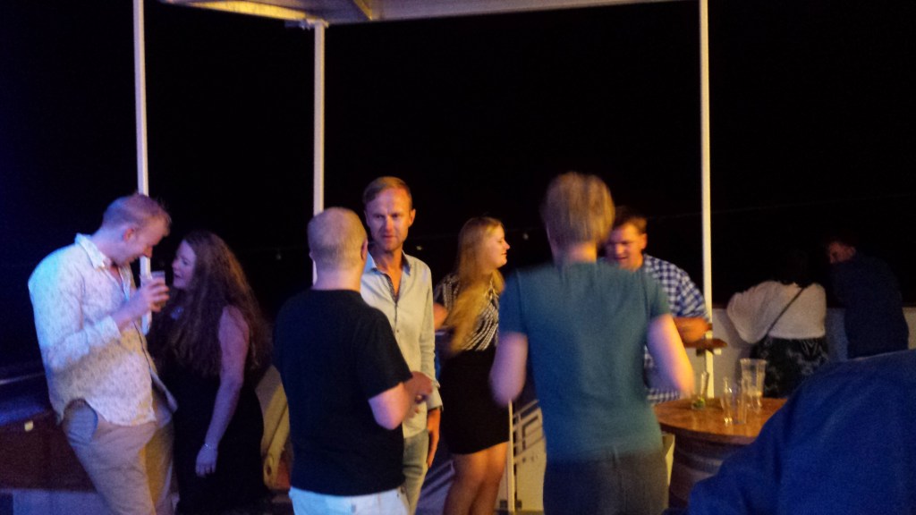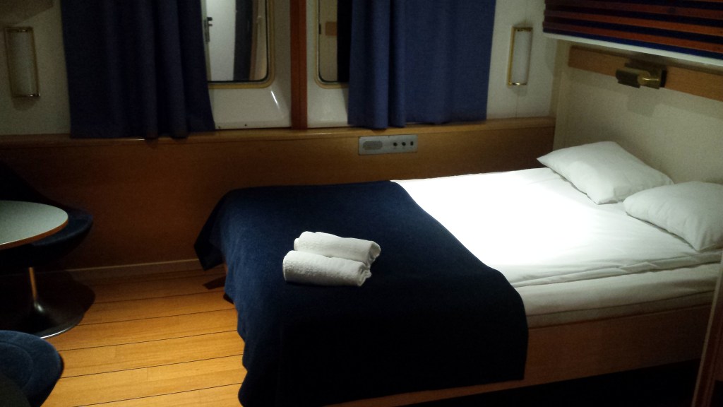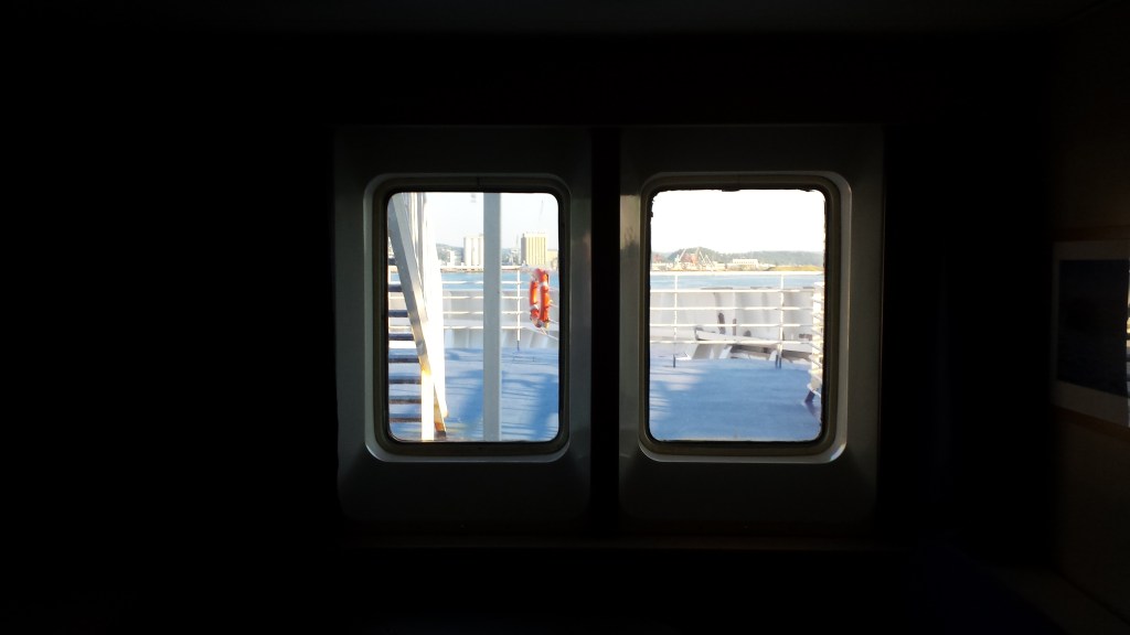 Mitt i natten knackade det upprepat på dörren. I den vanliga världen tyder det på något allvarligt, men Saga är Saga. Jag masar mig upp ur slafen, drar täcket runt mig och öppnar. Där står en kvinna som letar efter sitt sällskap och chansade på min hytt (de fanns i hytten intill visade det sig). Istället för att ursäkta sig och stänga dörren, var hon pratsugen och började fråga om vilka som bodde i min hytt. Det var bara jag själv, och dum som jag var bjöd jag inte in henne. En dörr som står öppen var annars ett tecken (och är väl ofta på färjor), en signal att här kan man joina.