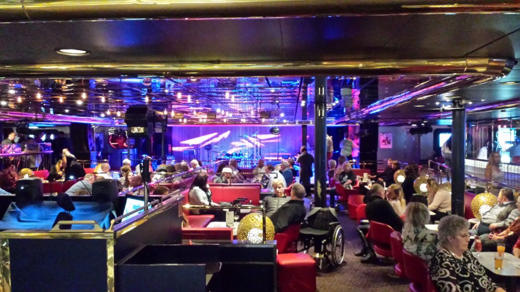 Den stora nöjeslokalen låg förut på däck 7. Det fanns en stor bardisk och en behovsöppen mindre. Spel- och dobbelhörnan var också belägen här med bland annat roulett-bord. Stena fick ombord flera kända artister och körde temakryssningar flera gånger om året som fyllde båten. Däremellan stod proffesionella ”husband” som Apperance för mycket av musikunderhållningen. Vid lugnare klockslag höll kryssningsvärden i bingo och tävlingar, och musicerade själva beroende på vem och hur deras kontrakt såg ut.